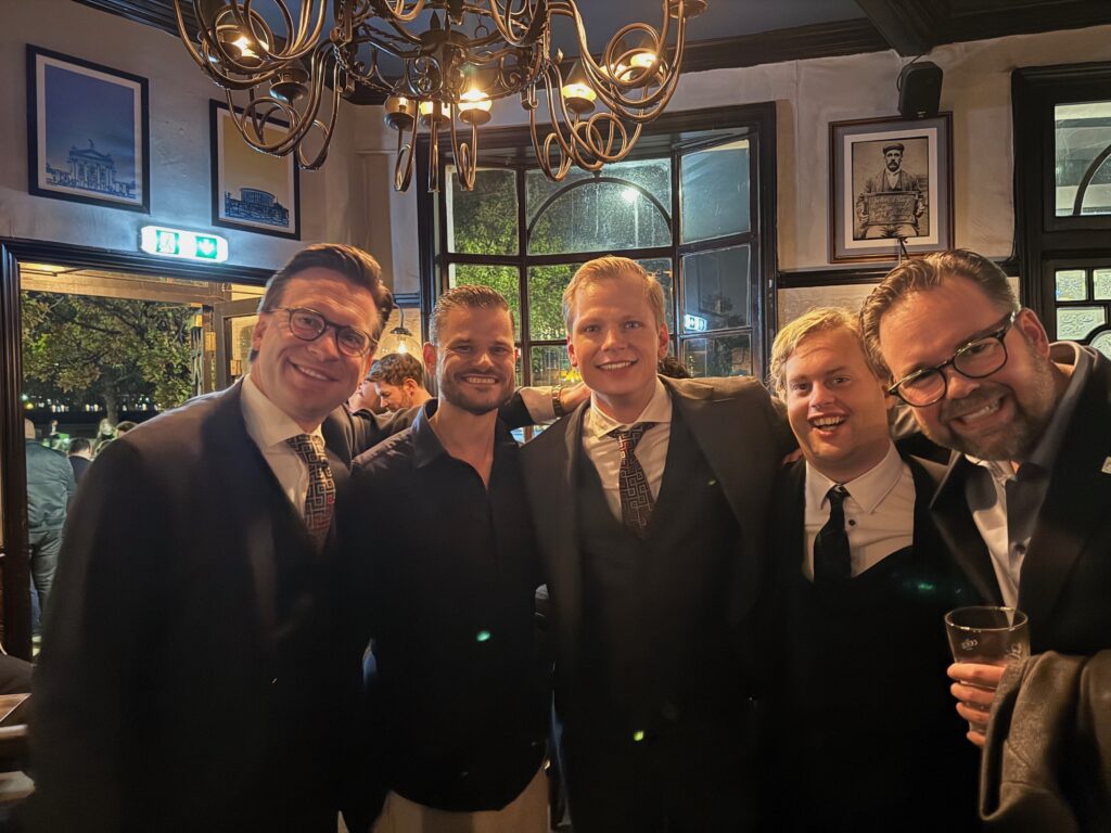 Een aantal weken voor het Bond-weekend nodigde David me uit om alles over het speciale pak en de samenwerking met Grey Flannel te vertellen. Tijdens het event liep ik vele vrienden tegen het lijf. Het was een fijn weerzien. Het maatpak van David stond hem fantastisch. Dat mag bijzonder worden genoemd, omdat het opnemen van zijn maten via Zoom gebeurde. Ik liet me de speciale GoldenEye 30-cocktails vol heerlijke Saville Row Gin prima smaken. Daarna ging ik met Martijn Mulder van On The Tracks of 007, Gosse, Corneel en Joe Sillock van The Bond Enthusiast de pub in.